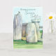 Envie saudações felizes de solstício de verão com este cartão com uma seção de Stonehenge com um pequeno melro vigiando no topo, desenhado à mão com tinta e aquarela. No interior há uma tonalidade suave de cinza e texto que pode ser editado para atender às suas necessidades.