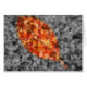 Fotografia de outono, colorida seletivamente, de folhas mirtilosas caídas de crepe, com forma de folha moldada a ouro, vermelha, laranja e amarela, contra fundo preto e branco.