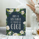 Só as melhores mães são promovidas a Gigi! Celebre o Dia de as mães, o Dia dos Avós ou uma nova avó para estar com este doce cartão de saudação, com o sentimento em letras brancas sobre um fundo azul marinho acentuado com flores brancas e marfim aquosas e folhagem botânica verde-escura. Adicione uma foto opcional e uma mensagem pré-impressa ao dentro para criar uma saudação personalizada exclusiva para Gigi.