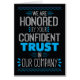 Expresse obrigados para os negócios de seu cliente e suporte com este design tipográfico exclusivo que contém a mensagem "Somos honrados pela sua confiança em nossa empresa". O Dentro tem esta mensagem, mas pode ser personalizado com uma mensagem de sua escolha. "Esperamos mostrar nossa gratidão por sua lealdade e apoio ao fornecer qualidade e serviço superiores de forma consistente. Estamos honrados em ter clientes como você. OBRIGADO."