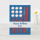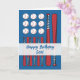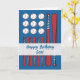 Celebre o seu filho adulto ou mais velho com este cartão de aniversário ousado de baseball, que combina o estilo de todas as estrelas com uma sugestão de Americana. Apresentando bastões vermelhos de baseball e bolas brancas de beisebol dispostas sobre fundo azul de madeira, o cartão dá um tom sutil à bandeira americana. Uma faixa branca esportiva destaca a mensagem "Feliz Aniversário Filho", com um layout forte e limpo. Ideal para um filho que cresceu no campo de bailes ou ainda pega jogos, este cartão é um excelente para qualquer cara de beisebol etário.