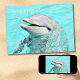 Uma carta doce e feliz com um golfinho. Você pode mudar a massagem de dentro!