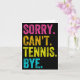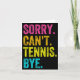 Cartão Sorry Can't Tennis Bye Teacher Student Funny Tenni