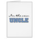 Eu sou o Tio Novo T-shirts, capuzes, cartões, botões de anúncio para bebês, ímãs, chaveiros e outros orgulhosos itens de tio novo com texto preto e azul.