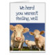 Soubemos que você não estava se sentindo bem... com humor de vaca... e espero que te ponha em um bom humor para que possa ficar bem logo. Engraçado humor animal com um rebanho de vacas. Cartão de identidade de um cheio de pessoas, de uma família ou de um escritório.
