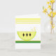 Design de fruta excelente com uma fatia de limão com sementes. Bordas de listras amarelas no topo e verdes e amarelas no fundo. Personalizar conforme desejado. Perfeito para um obrigado ou só para dizer olá.