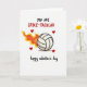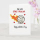 This volleyball Valentine's Day card features a creamy white volleyball in the center with black outlines showing the panels. A burst of flame shoots out from the left side of the ball in orange and deep red, making it look like it’s flying fast. Above the ball, the text reads “YOU ARE SPIKE-TACULAR,” with “YOU ARE” in black and “SPIKE-TACULAR” in bright red, in clear block-style letters. Around the ball and words, there are five small red hearts that add a sweet, caring touch ❤️. Near the bottom, it says “happy valentine’s day” in a simple handwritten script, also in black, like a personal note 💌. The whole design feels sporty but still romantic, like a fun compliment for someone you care about 🍫.