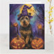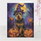 Cartão Spooky Airedale Halloween Witch e Pumpkin