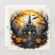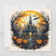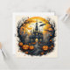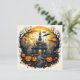 Cartão Spooky Halloween Cidade Sob Uma Lua Cheia