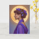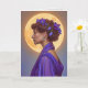 This Mucha-inspired portrait captures the spirit of spring through a dreamy, feminine lens. A pensive woman in a purple dress and matching shawl is framed by a glowing golden full moon, with blossoms woven into her hair. Evoking Belle Époque elegance and Art Nouveau romance, this greeting card carries the message inside: “May your dreams glow as brightly as your spirit.” Designed by Alma Wad using Canva AI.