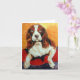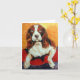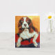 Cartão de saudação com uma pintura a óleo de um cão Espanhol Springer castanho e branco. O cartão é vazio da sua própria mensagem.