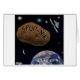 Uma batata enorme flutua no espaço. "Spud-Nik."