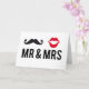 Cartão Sr. e Sra., bigode e lábios vermelhos