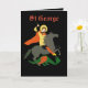 This editable greeting card features a colourful design of St George and the Dragon based on a medieval painting on a black background.. Perfect for celebrating St Georges Day.