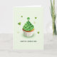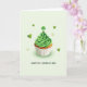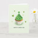 This card centers on a golden-brown cupcake in a white ridged liner, set against a soft pastel-green background that keeps everything airy and calm 💚. A tall swirl of green frosting rises in smooth curves, shifting from bright lime to deeper emerald, and it’s topped with a crisp three-leaf shamrock ☘️. Around the cupcake, semi-transparent green hearts drift like confetti, and their gentle spacing feels like affectionate glances shared across a room. The simple layout leaves plenty of open space, letting the cupcake and hearts feel close without crowding each other. Near the bottom, the phrase “HAPPY ST. PATRICK’S DAY” sits in all caps, colored a deep forest green that stands out clearly from the lighter backdrop. The text is centered and grounded, like a steady note beneath the floating hearts above. The frosting’s peaks and valleys catch the light, and the hearts fade from darker to lighter green as they scatter across the background.