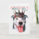 Este engraçado cartão de aniversário quer dar uma rainha à garota celebrando seu dia especial, e este Staffordshire Terrier Pitbull está pronto para fazer sua rainha por um dia.
