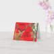 O pano de fundo vermelho com folhagem de inverno e canto dourado floresce. Personalize com seu próprio nome. Cartão Yule adequado para pagans, wiccans e os de uma crença sazonal tradicional/alternativo.