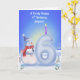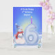 This whimsical winter illustration is perfect for celebrating your stepson's sixth birthday designed to be fully winter with colors and details. A cheerful snowman stands proudly beside the snowy “6” he has just built, admiring his handiwork with a joyful expression. Snowballs are scattered around the base, adding playful movement, while soft winter flowers bring a gentle seasonal touch. The cozy palette and charming details create a magical winter atmosphere kids adore.