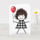 Garota com balão vermelho, cabelo e óculos em fundo branco para aniversário Texto em balão pode ser editado ou excluído. A cor de fundo pode ser alterada.