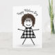 Garota bonita de cabelos, vestidos de xadrez e óculos em branco com padrão de xadrez de búfalo para Dia de as mães. O texto pode ser editado ou excluído.