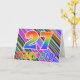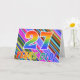 A frente deste design de cartões de saudação de aniversário, divertidos e vibrantes, que chama a atenção, apresenta um padrão riscado com muitas cores, juntamente com a mensagem "27 anos!", que apresenta um padrão de gradação inspirado no arco-íris multicolor. O dentro apresenta uma mensagem de saudação personalizável, ou talvez possa ser apagado e deixado o vazio se uma mensagem for escrita manualmente. Um cartão de boas-vindas como este poderia ser uma maneira divertida e feliz de enviar uma mensagem a alguém que está celebrando seu vigésimo sétimo aniversário. [~Z0000351]