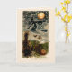 A dark sky filled with stars and a big, harvest moon is studying an interesting star formation of a witch on a broom. It’s a perfect Halloween night. The text is original to the print and reads, “Study the Stars on Hallowe’en Night.”