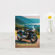 Este cartão de aniversário apresenta uma motocicleta contra um incrível fundo natural.