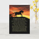 Cartão de solstício de verão com um belo cavalo silenciado no longo pôr do sol do dia mais longo. Um poema de bênçãos, envia intenções excelentes sobre este maravilhoso Sabbat.