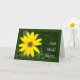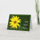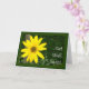 Uma fotografia de uma flor amarela clara (Rudbekia) contra um fundo verde-escuro faz deste um cartão alegre para quem não está bem. O texto, em branco, diz: "Muito bem em breve" e a dentro é deixada vazio para a sua própria mensagem.