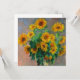 Cartão com o Buquê de pintura a óleo de Girassóis de Claude Monet (1881). Lindos girassóis num vaso azul sobre uma mesa vermelha. Um presente de excelente para fãs do impressionismo e da arte francesa.
