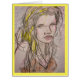 Uma garota de praia com cabelo molhado na praia em um biquíni de arte original.