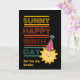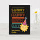 Feliz aniversário Sunny para o Meu Sis, cartão de cumprimentos de papel da irmã com um lindo e feliz sol vestindo um chapéu de aniversário e sorrindo. Fundo preto com letras retrorreflectoras coloridas. Personalize a área de texto inferior do cobrir como quiser com o nome da sua irmã. Arte, imagem e direitos de autor versos © Shoaff Ballanger Studios, 2022.