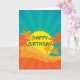 Birthday card for the surf and beach lover ! With a design of a retro tropical beach at sunset with palm trees. This surf design is in colours of red, orange and yellow and brings to mind a hot tropical beach resort in the Summer time. For lovers of sun, surf and sand and tropical sunsets..