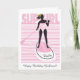 Um design de cartão de conselho de de remo de remo bonito só para meninas. Uma silhueta de uma garota em um quadro de remo contra um fundo de listras cor-de-rosa e linhas onduladas é certa para qualquer garota da água que ama o esporte do remo. Personalizar - adicione um nome!