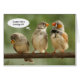 Cartão de aniversário com uma bolha da conversa com o texto, "suposição que está girando 49" em uma foto da natureza de três passarinhos em um galho/ramo. Você pode personalizar com seu próprio texto usando os modelos fáceis para o texto exterior e interno deste 49th cartão de aniversário.