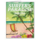 Surfista no Paraíso Queensland Austrália estilo antigo Sandy Beach Viagem art. Dourado poster de férias australiano.