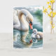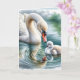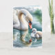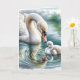 Um cisne gracioso se inclina em direção ao seu cigano fluffy em águas tranquilas. Todo o texto pode ser alterado.