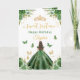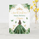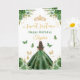 Celebrate her Sweet 16 with this elegant princess birthday card featuring a brunette girl in a sparkling dark green ball gown, illustrated gracefully from the back. Soft florals, fluttering butterflies, and a regal gold crown create a magical and feminine look perfect for this milestone birthday. The dark green and gold color palette adds timeless charm, making this a beautiful keepsake card she’ll treasure long after the celebration.