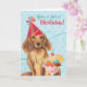 Feliz aniversário com este design bonitinho com um sorridente e festeiro Dachshund, que veste o chapéu, com um sundae de sorvete. O texto pode ser facilmente alterado; basta clicar no botão personalizar.
