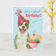 Feliz aniversário com este design bonitinho com um sorridente e festeiro Pit Bull Terrier americano, vestindo chapéu, com um sundae sorvete. O texto pode ser facilmente alterado; basta clicar no botão personalizar.