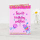 Cute and lovely pink and purple hearts and sweet desserts birthday greeting card