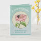 Este novo cartão de parabéns para bebês apresenta uma doce fada de bebê dormindo em uma flor rosa. Também está disponível uma versão com pele clara.
