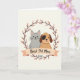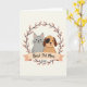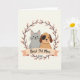 Designed with a soft, cream-toned background, the illustration centers on two animal companions standing close as if sharing a quiet, affectionate moment ❤️. A stylized gray cat with fine whiskers and faint head stripes stands beside a tan dog with floppy ears and a dark patch over one eye. Their wide, dark eyes and small, upturned smiles suggest an easy bond, like best friends leaning into each other without needing words. Surrounding them is a thin circular wreath of dark twigs, dotted sparingly with small round coral-pink berries or tiny budding flowers 🌼. Across the lower portion, a peach-colored ribbon banner stretches from left to right, slightly curved as it crosses the scene. The message “Best Pet Mom Ever” sits centered on the banner in dark lettering that looks like flowing handwriting. The wreath’s twig lines are slender and slightly uneven, and the coral-pink dots are spaced around the circle like little beads.