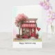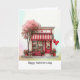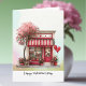 Give your Valentine your love with this sweet folded greeting card printed with a quirky little shop scene filled with lots of cute hearts, balloons and flowers details. Watercolor style illustration has an abstract pastel background front and back. Created in a palette of mostly red and pink colors, with your choice of sizes. Editable text on front and inside.