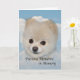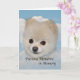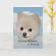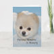 A lovely and soft pomeranian dog with large dark eyes is blended into a background of sky and clouds on this sympathy card for someone who has lost a pet dog. An offer of sympathy at this time will let your friend know that you are thinking of them as the get through this very heart breaking time. The inside verse is a text template and easily changed or deleted.