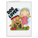 Um design adorável do amante do cão que caracteriza uma figura menina de cabelo loura e um cão orelhudo grande da vara em uma casota em t-shirt do amante do cão, bodysuits, cartões, etiquetas, sacolas, ímãs, chaveiro, e outros roupa e presentes do amante do cão.