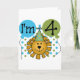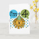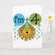 Um leão bonito em um chapéu de festa, bolinhas azuis e verdes e balões, e texto que diz "Eu tenho 4 anos" é apresentado em T-shirts bonitinhas de 4º aniversário do Leão, camisas de suor, canecas, cartões, autocolantes, bolsas e muito mais.