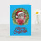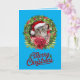 Uma cinza vestindo um chapéu de Papai Noel olhando através de uma bonito coroa de Natal.