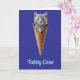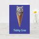Uma mesa de cinza por gatinho está saindo de um cone de sorvete.