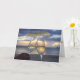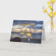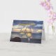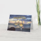 Lindo Cartão de Felicitações de Casamento Personalizado com Taças de Champanhe com Vista para uma Praia ao Pôr do Sol.